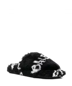 ( Positively Conscious ) Balenciaga 1090 BLACK/WHITE Chaussons En Fourrure Artificielle Ă Logo Femme