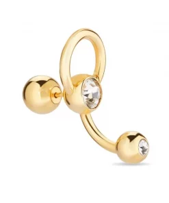 ( Positively Conscious ) Balenciaga Boucles D’oreilles XS B Chain 7167 SHINY GOLD/CRYSTAL