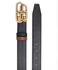 ( Positively Conscious ) Balenciaga Ceinture Réversible à Boucle Logo BB 1062 BLACK/ DARK TAN