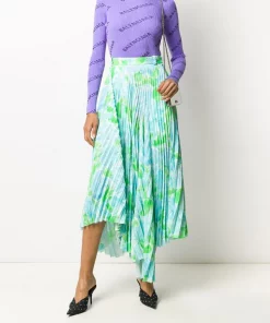 ( Positively Conscious ) Balenciaga 4301 BLUE Jupe Dynasty Plissée à Fleurs Femme