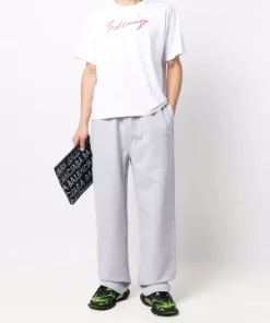 ( Positively Conscious ) Balenciaga Pantalon De Jogging Oversize En Coton 1379 HEATHER GR/WHITE/RED